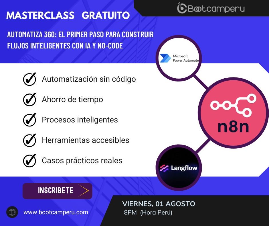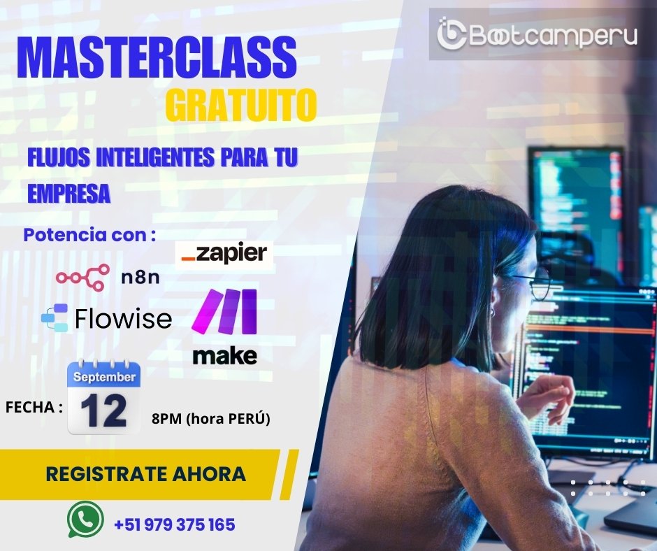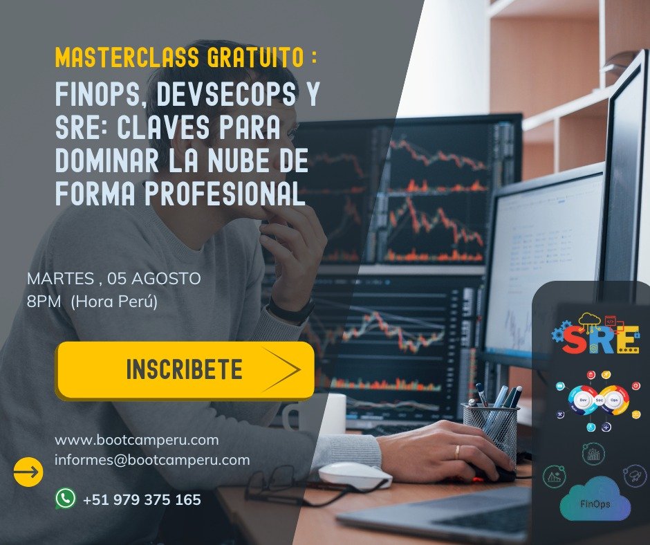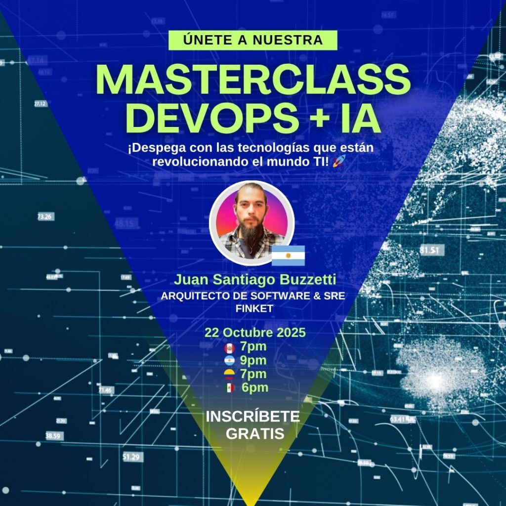 EVENTOS 22 de Octubre 25 - 7pm Masterclass Gratuito masterclass de devops + IA Inscríbete GRATIS 23 de Septiembre 25 - 8pm Masterclass Gratuito Data Fabric en Acción: El Futuro de la Arquitectura de Datos Inscríbete GRATIS 12 Septiembre 25 - 8pm Masterclass Gratuito Flujos Inteligentes para tu Empresa: Potencia con n8n, Make y Zapier Inscríbete GRATIS 09 Septiembre 25 - 8pm Masterclass Gratuito Arquitecturas Modernas de Datos: de TOGAF al Data Mesh Inscríbete GRATIS 01 Agosto 25 - 8pm Masterclass Gratuito Automatiza 360: El Primer Paso para Construir Flujos Inteligentes con IA y No-Code Inscríbete GRATIS 12 Agosto 25 - 8pm Masterclass Gratuito Arquitectura Cloud-Native: Docker, Kubernetes y Más Inscríbete GRATIS 05 de Agosto 25 - 8pm Masterclass Gratuito FinOps, DevSecOps y SRE: Claves para dominar la nube de forma profesional Inscríbete GRATIS 17 Febr 25 4 sesiones CURSO Power BI Inscríbete $100 GRATIS 08 Mar 25 4 sesiones CURSO RPA (Automatización Robótica de Proceso) Inscríbete $100 GRATIS 10 Mar 25 4 sesiones CURSO Mastering Vue.js: De Cero a Experto en Desarrollo Frontend Inscríbete $100 GRATIS 08 Mar 25 4 sesiones CURSO RPA (Automatización Robótica de Proceso) Inscríbete $100 GRATIS 10 Mar 25 4 sesiones CURSO Mastering Vue.js: De Cero a Experto en Desarrollo Frontend Inscríbete $100 GRATIS